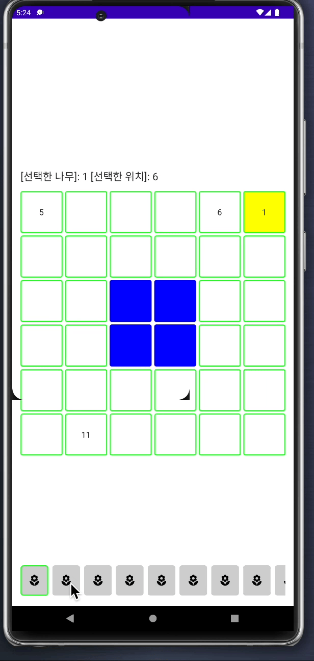 3. Selected, 4. Empty : 클릭 이벤트가 발생하며, Selected일 경우 현재 선택한 나무를 표시하고 Empty일 경우 비워둡니다.