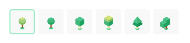 2. Planted : 이미 심어져 있는 상태이기 때문에 어떤 나무가 심어져 있는지 표시합니다. (이미지 대신 텍스트로 대체)